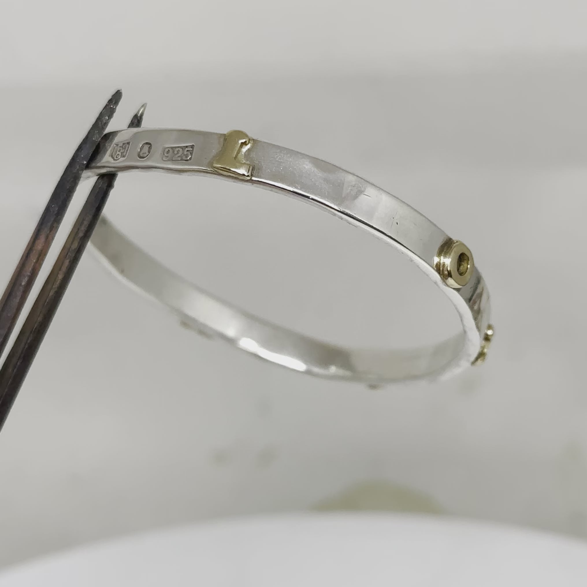 These bracelets are made of 925 Sterling silver and the letters can be chosen in silver, brass, or 18K gold.
