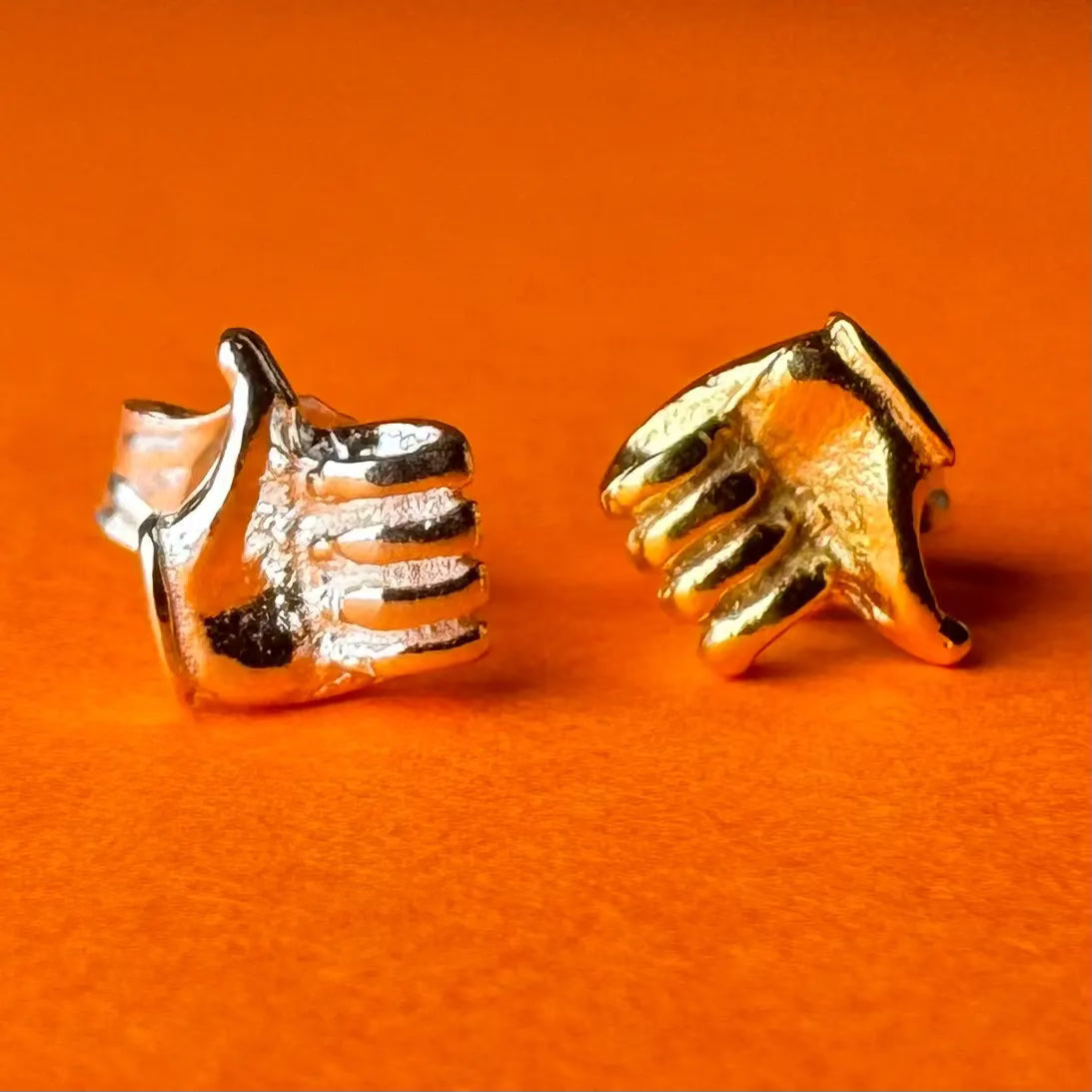 With these cool earrings you can express your feelings ;) Just turn your thumb up or down depending on how you feel! These earrings are made of sterling silver and double gold (18K on brass).
