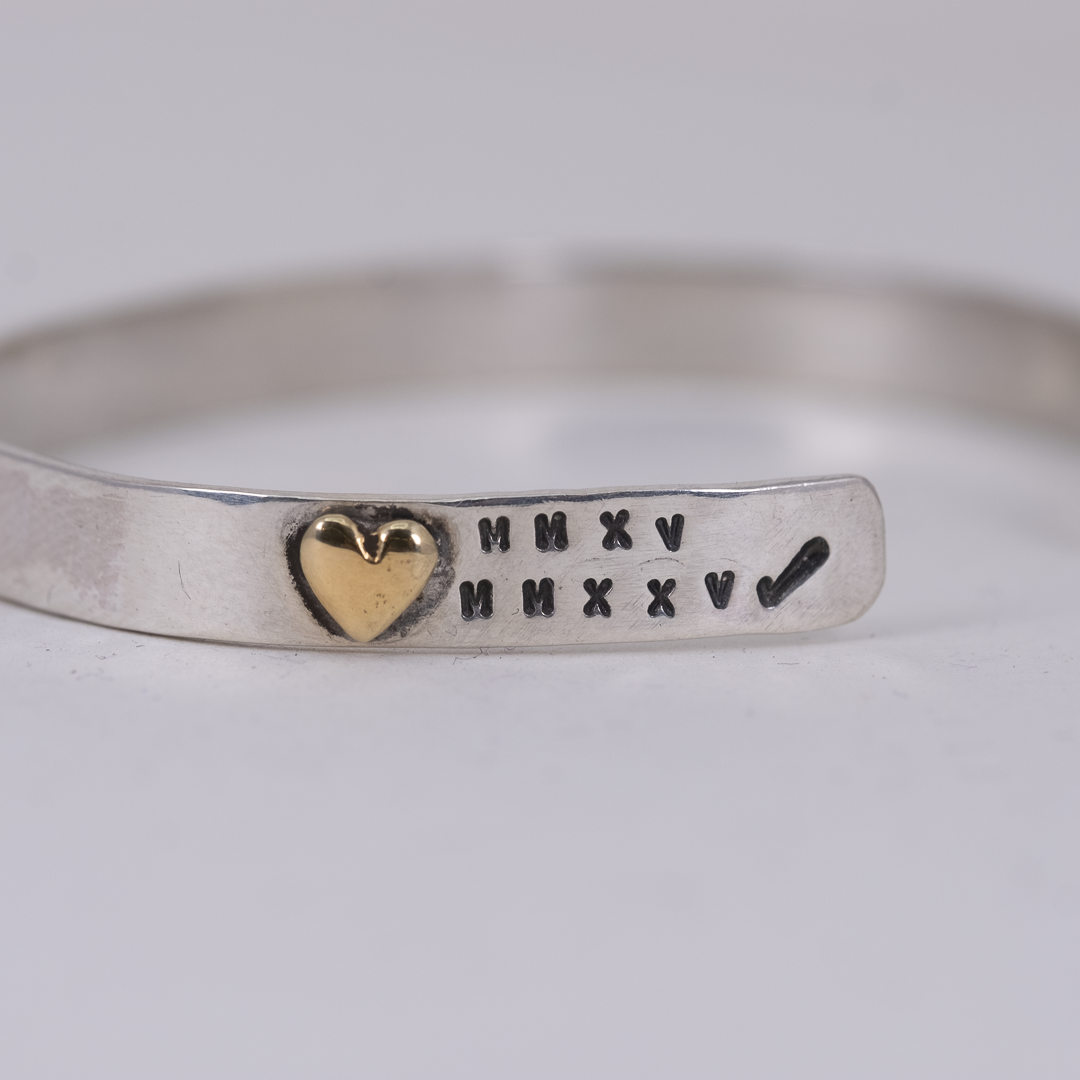 Nämä rannekorut on valmistettu 925 sterlinghopeasta, ja kirjaimet voi valita hopeasta, messingistä tai 18K kullasta.