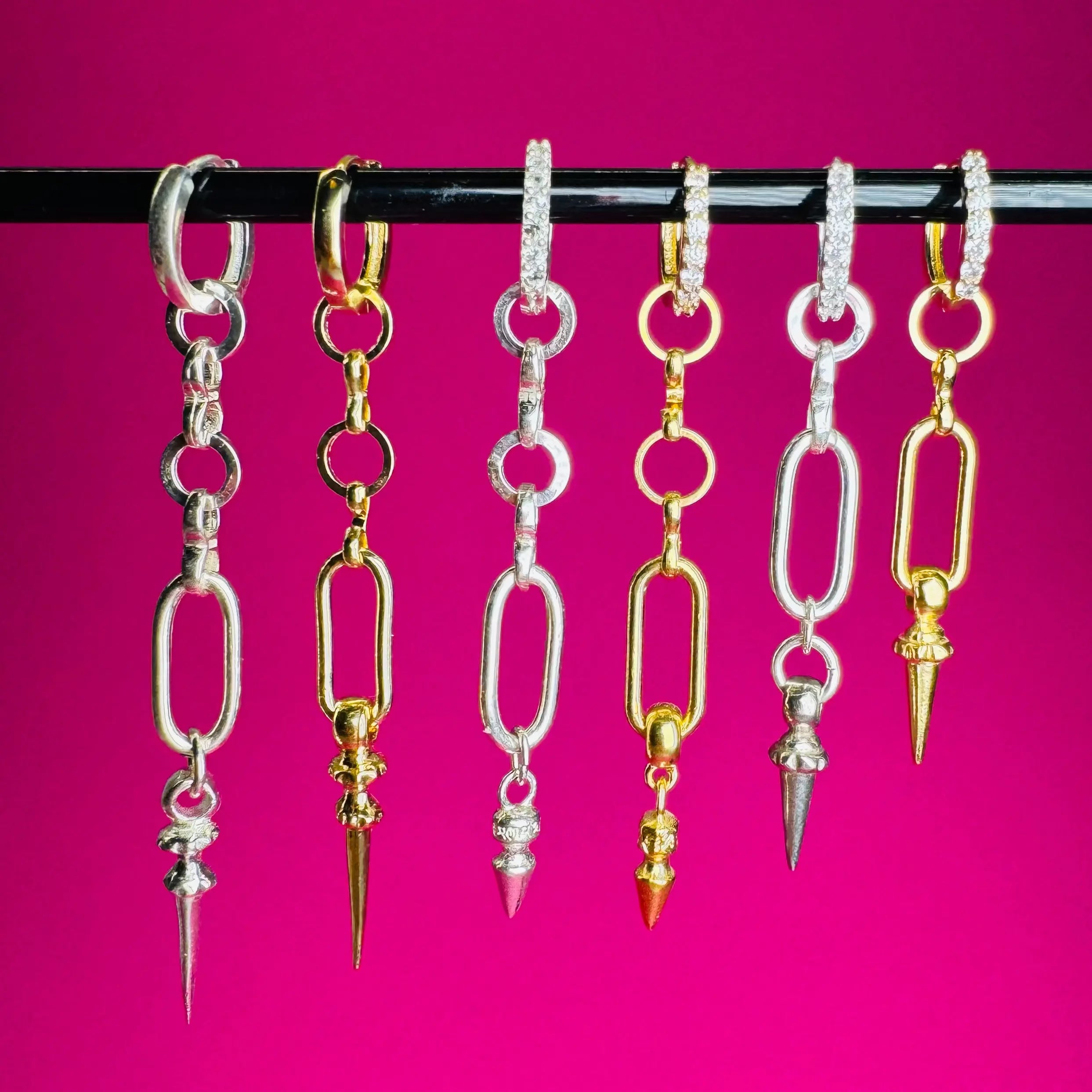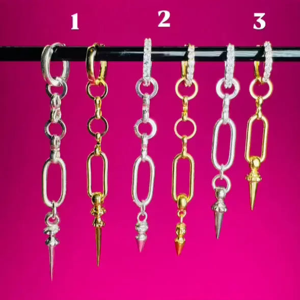 Niin kauniit korvakorut, joissa on erilaisia niittejä, saatavilla lyhyemmässä ja pidemmässä mallissa sekä hopeana että kultapinnoitteena (18k messinkillä).
