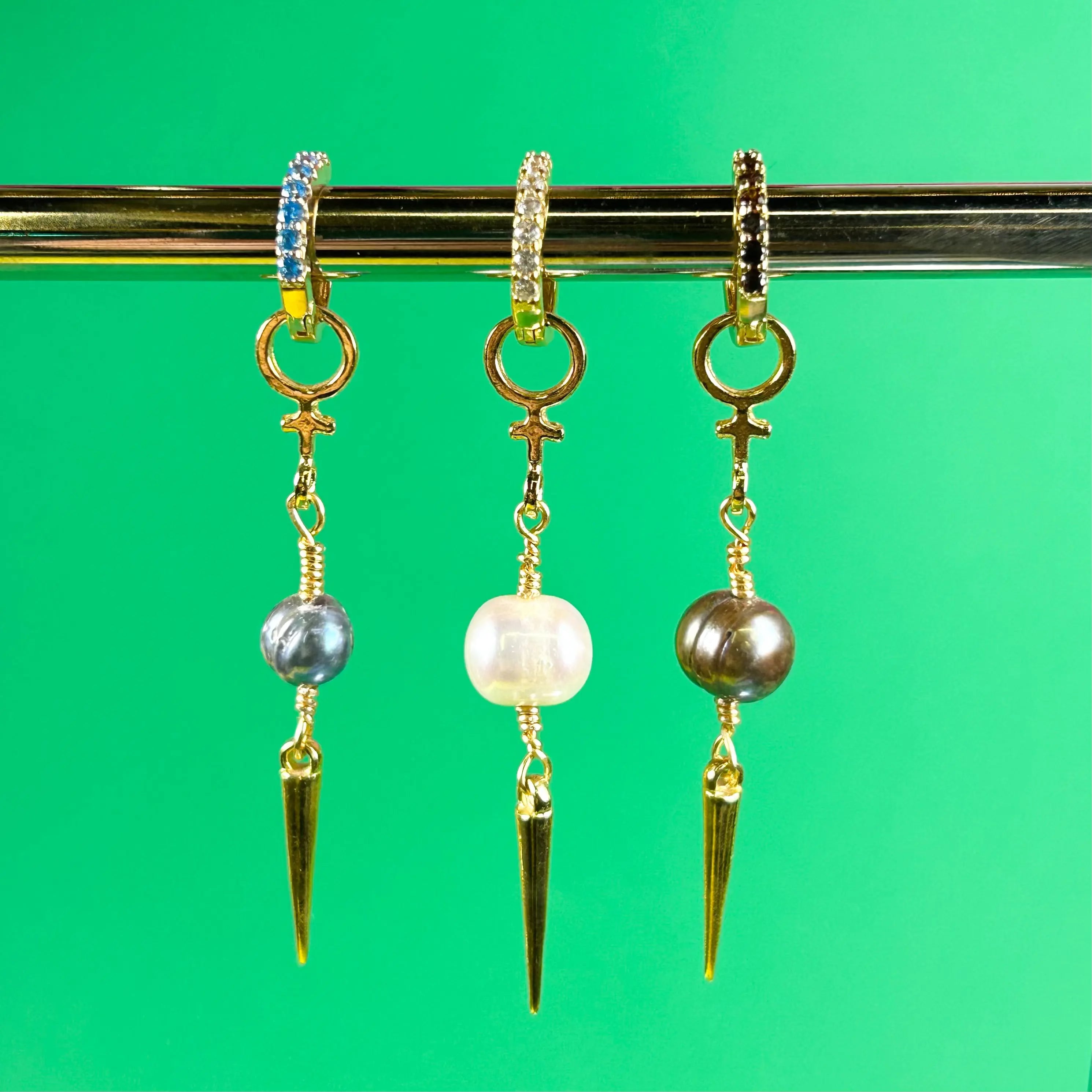 Nämä tyylikkäät ja hienot helmikorvakorut, joissa on Venus-merkki, on valmistettu 925-sterlinghopeasta tai kultakaksoisesta (18K messingistä) yhdessä aidon helmen kanssa.