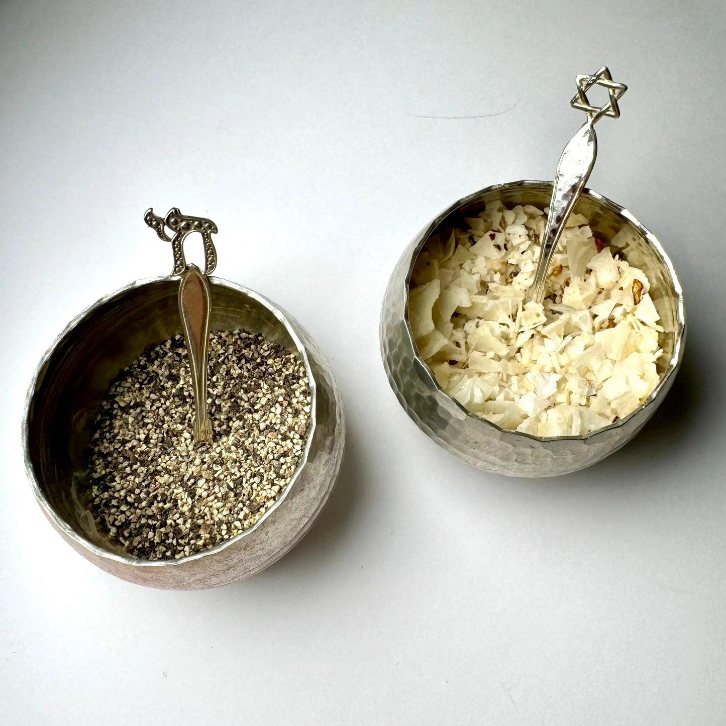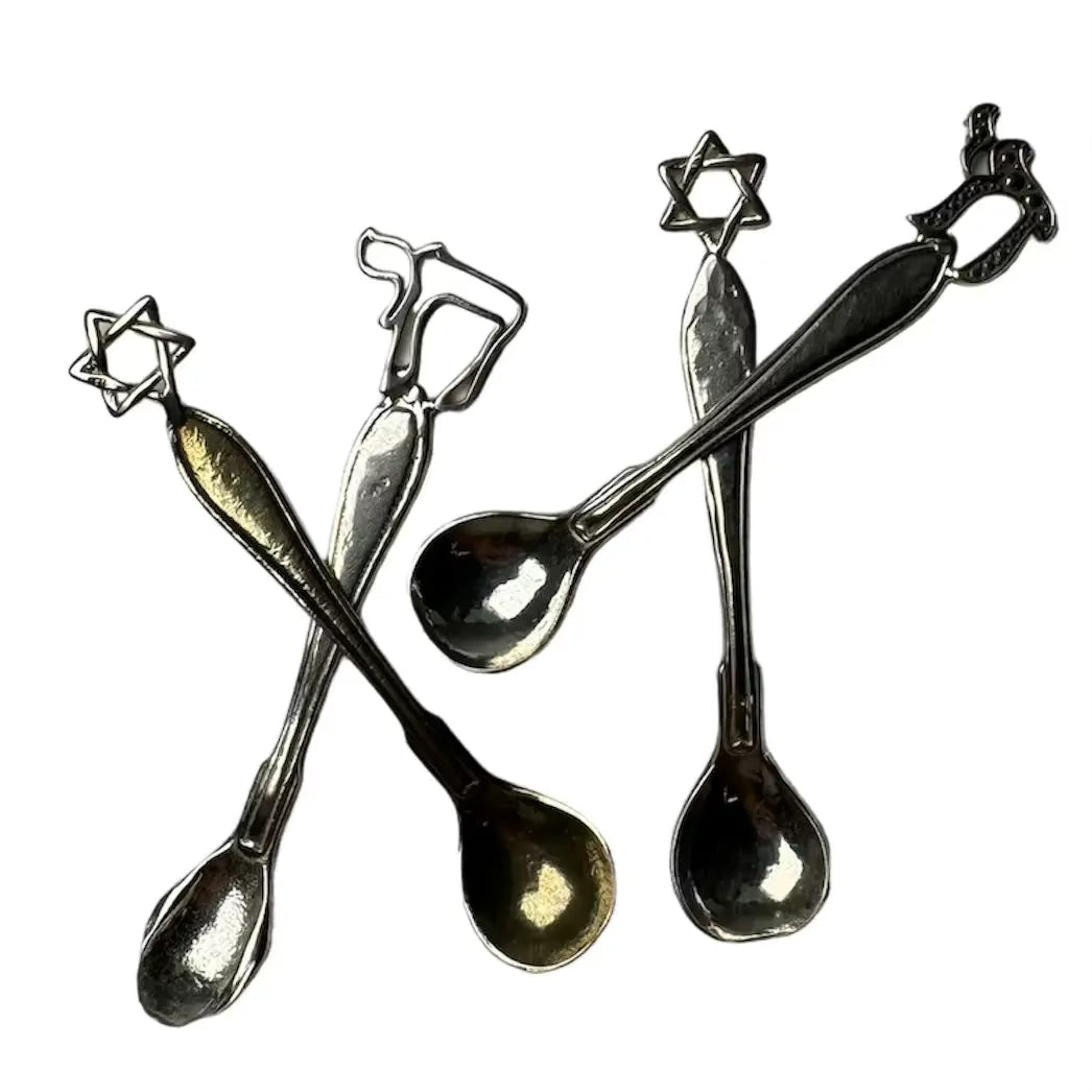 Niin kauniita suolalusikoita, joissa on chai tai daavidintähti päällä. Täydellinen muuttopresentti.