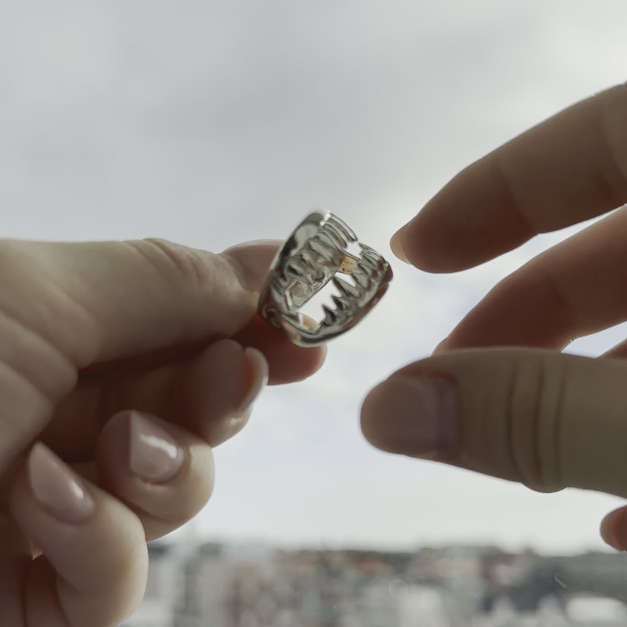 The bite on hieno pallo rengas, jossa leuka on liikkuva. Rengas on käsintehty eikä sitä saa pienempänä kuin 17,5.