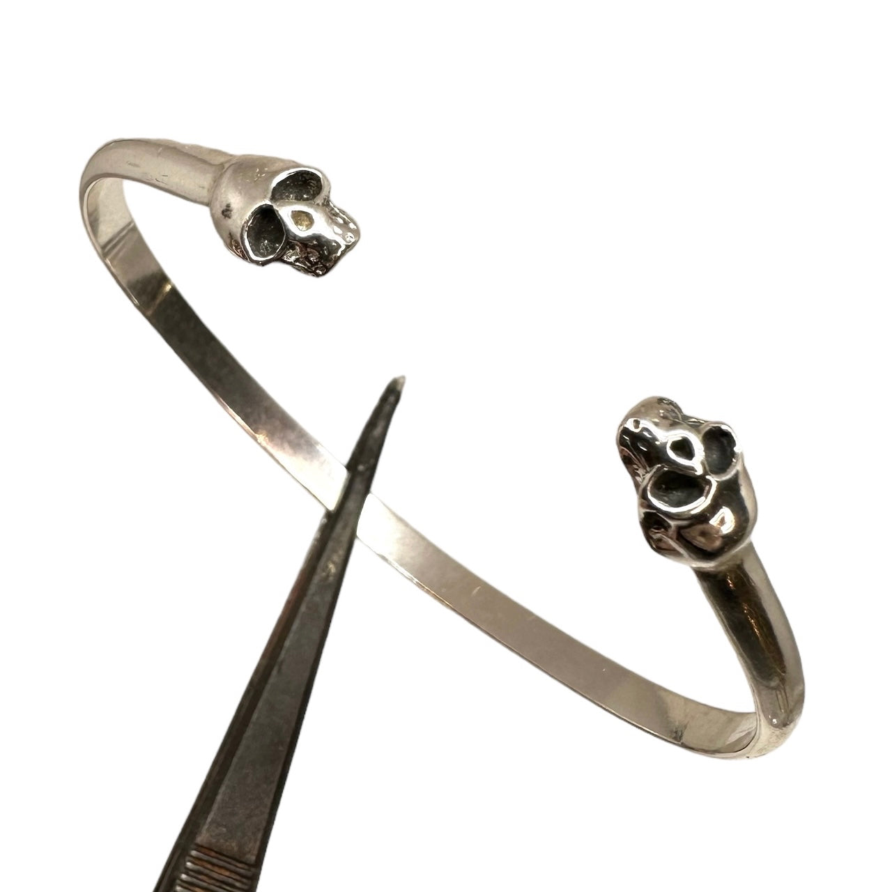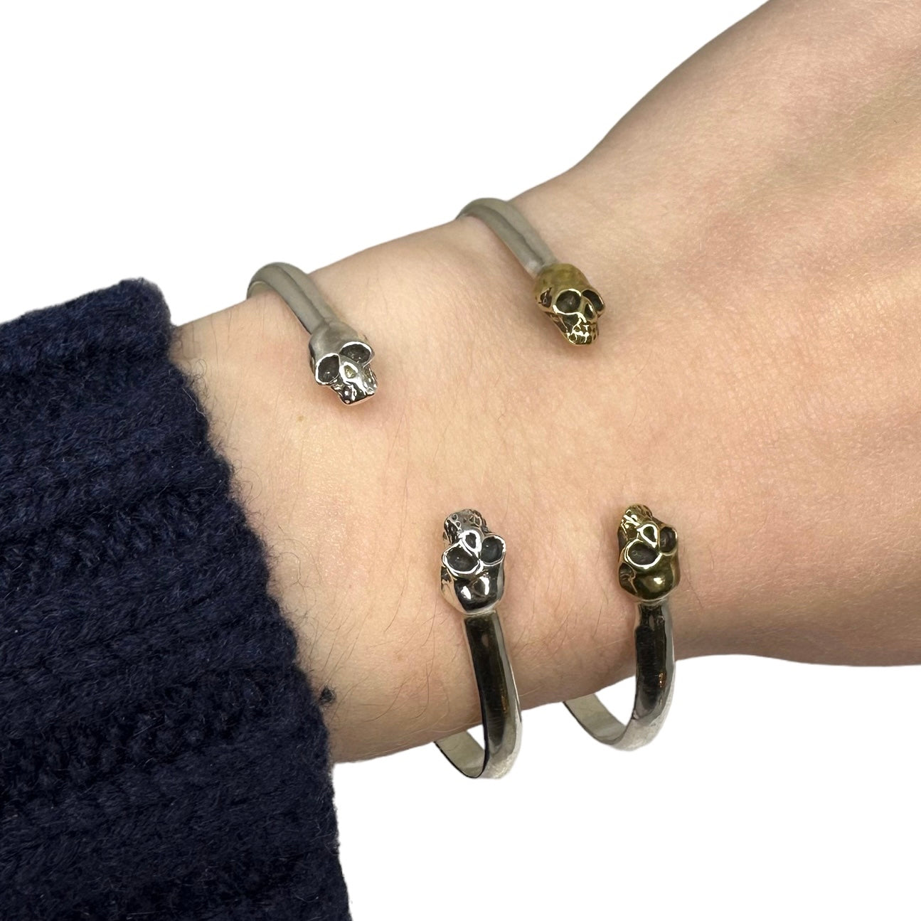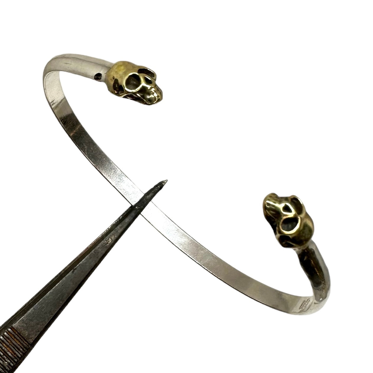 Armbandet är gjort i sterling silver men dödskallarna går att få i silver, mässing eller 18K guld.