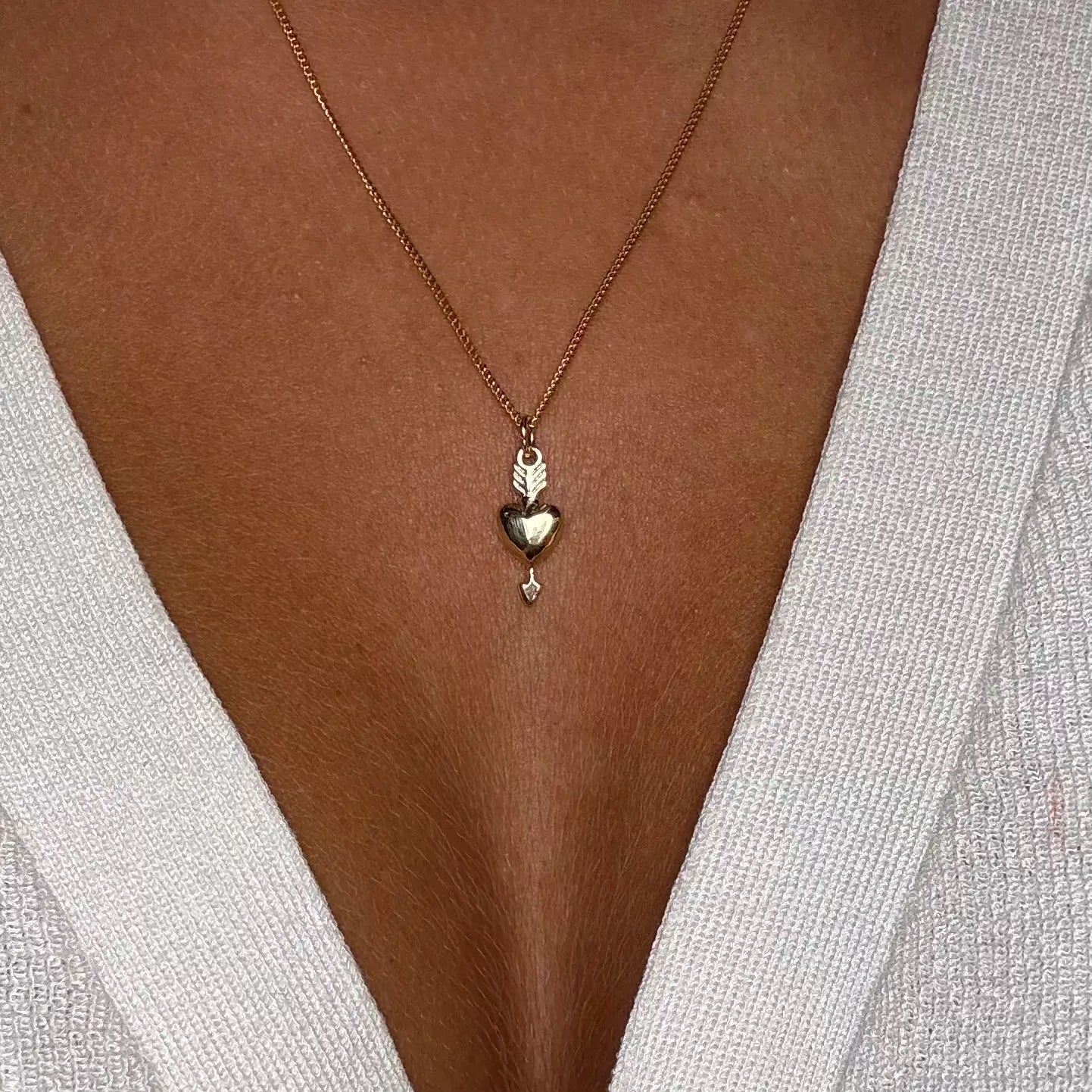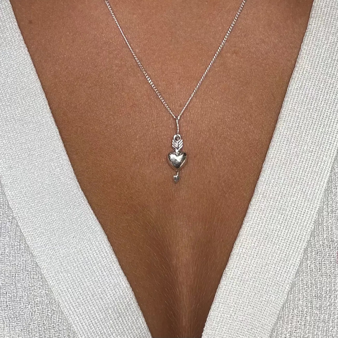 Denna berlock fångar känslan av evig kärlek, med pilen som symboliserar en kärlek som går rakt till hjärtat och stannar där för alltid.