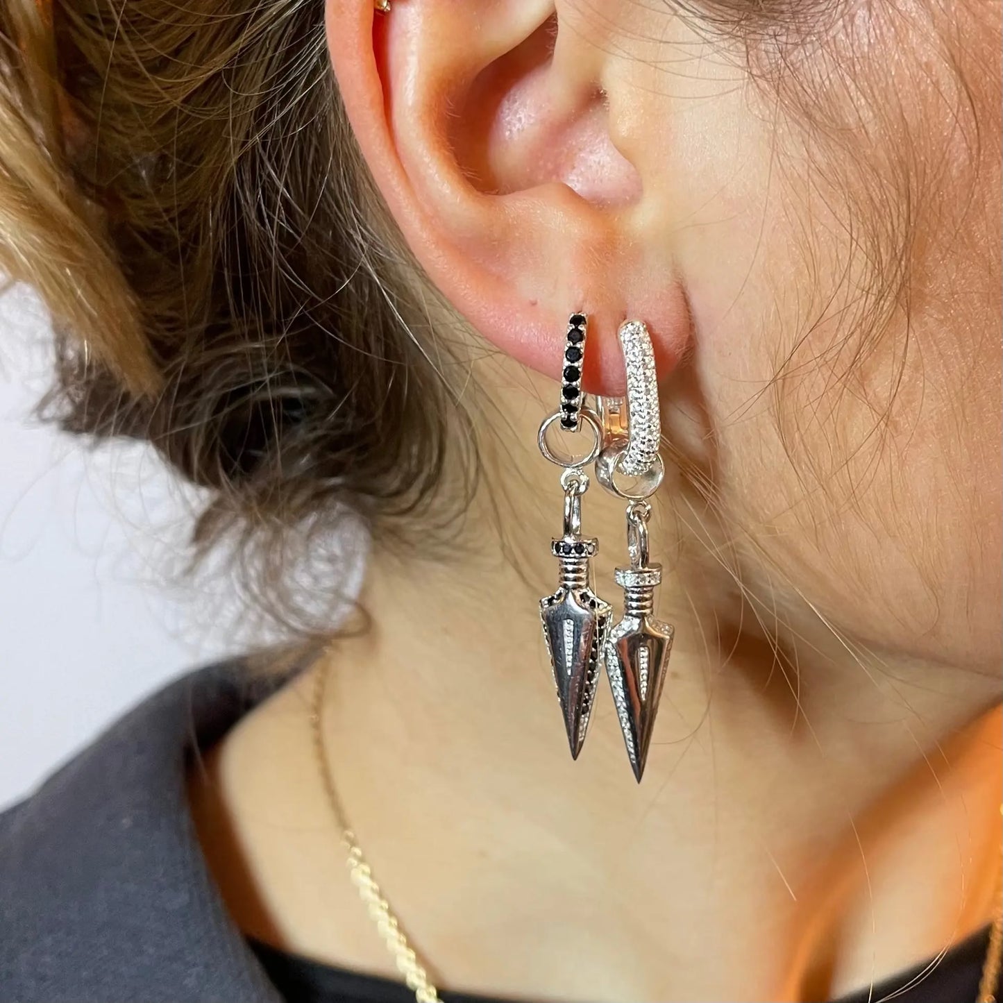 Örhänge i sterling silver 925 som finns med både svarta och vita zirkoner