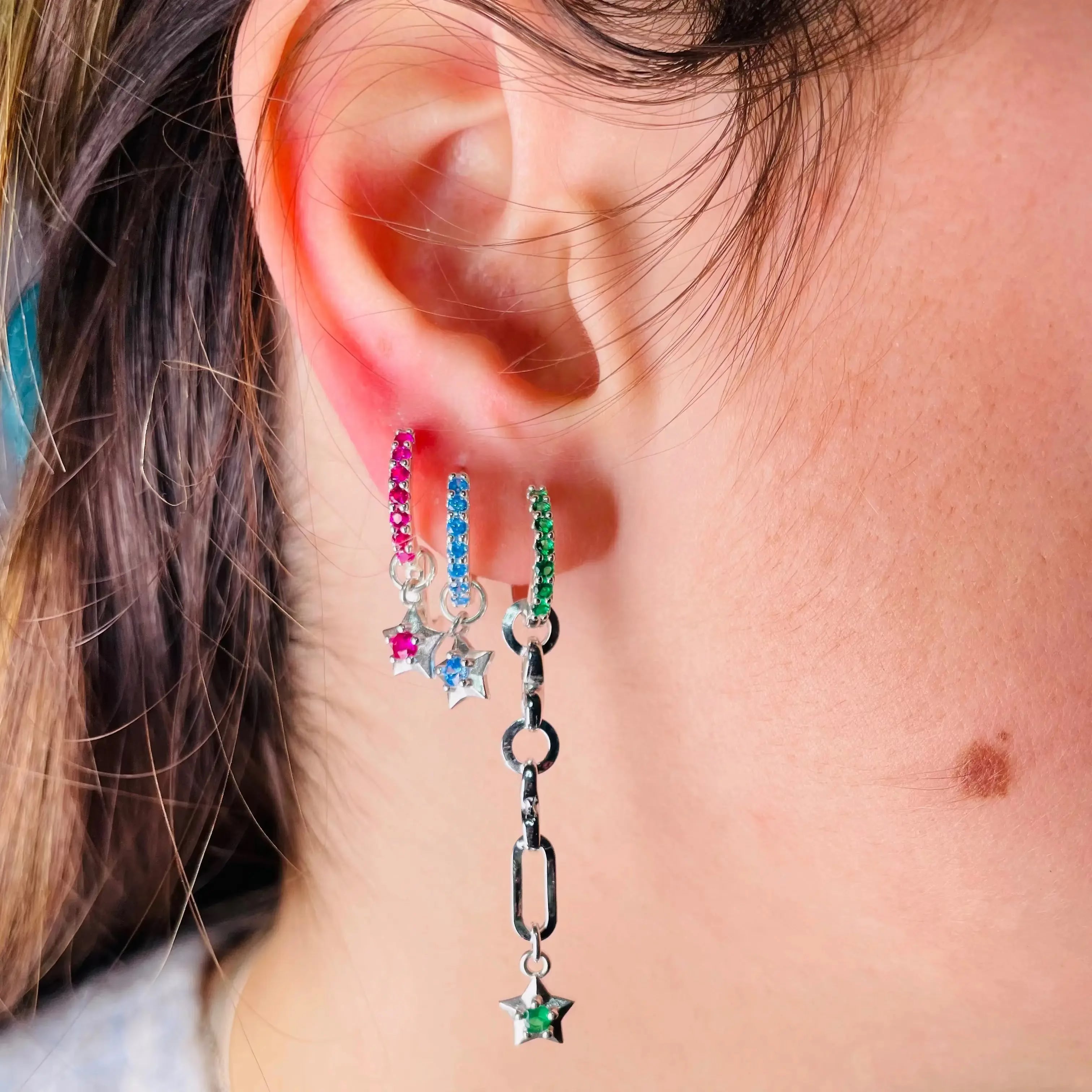Dessa örhängen passar vi snyggt ihop med zirkonen på stjärnan och med själva örhänget!