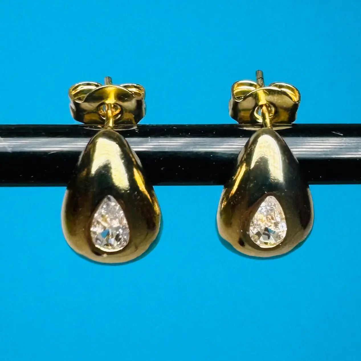 Örhängena är handgjorda i gulddoublé (18K på mässing) med en äkta zirkon.