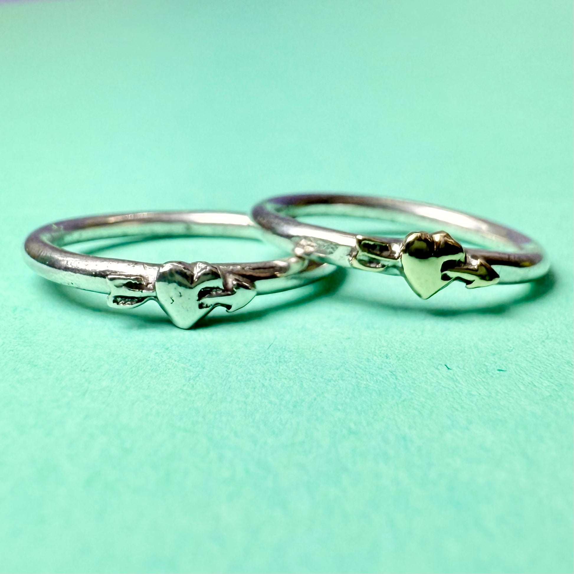 Ringen är handgjord i 925 sterling silver med ett silverhjärta eller mässingshjärta.