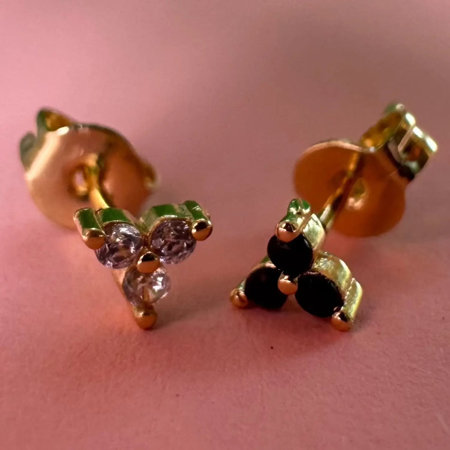 Miniörhängen med tre blomblad fyllda av zirkoner. Finns i svarta och transparenta zirkoner.