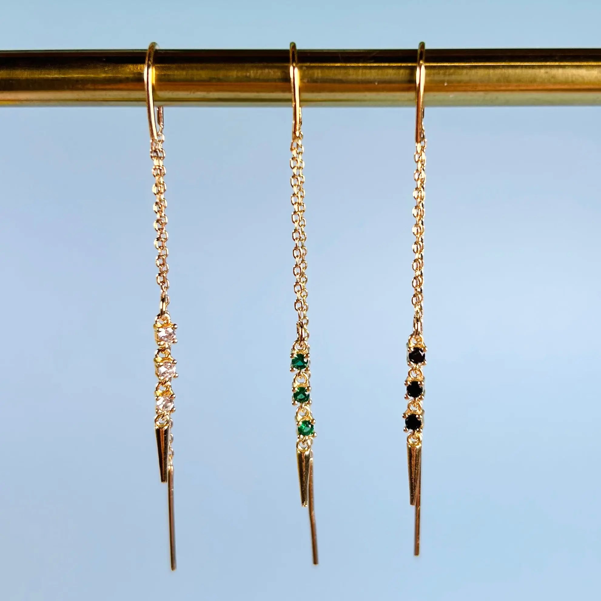 De här örhängena är gjorda i 18k guld på mässing.